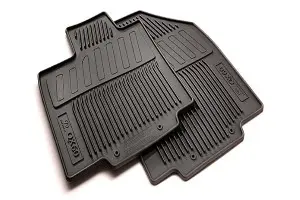 Custom-made of durable and long-wearing material. Drivers and front-passengers mats secure with a grommet hole/positioning hook system. Floor mat backing is designed to help position the mat in place. Floor mats include four pieces, two front and two rear.